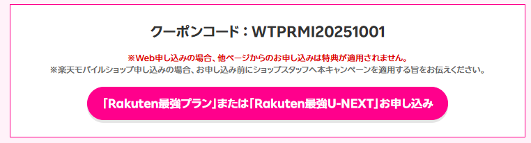 2025年4月11日のルール変更以降、本物の三木谷キャンペーンでは専用クーポンコード「WTPRMI20251001」の入力が必須となりました。