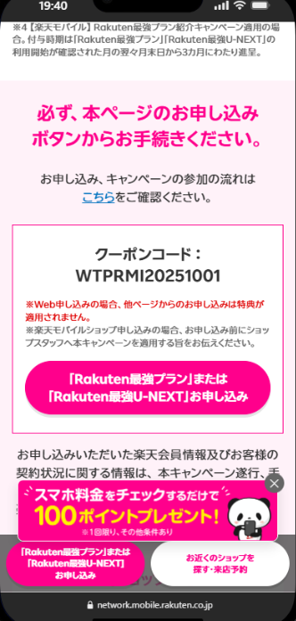最も重要なのは、楽天モバイル公式ドメイン「https://network.mobile.rakuten.co.jp」から始まるURLからのみ申し込みを行うことです。