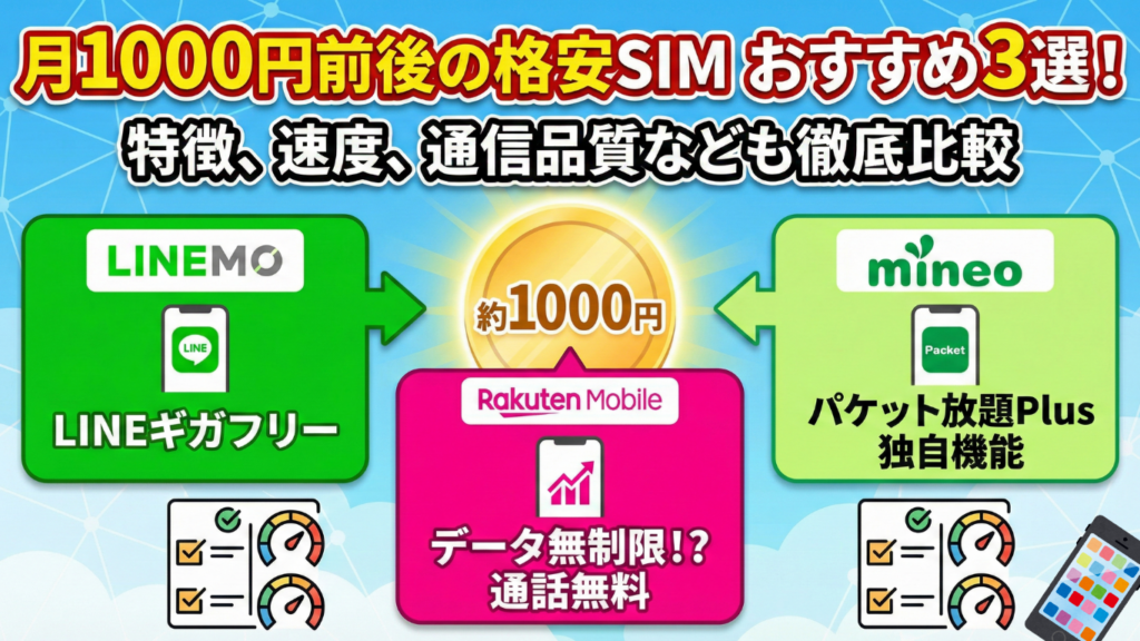 月1000円前後の格安SIMおすすめ3選!特徴、速度、通信品質なども徹底比較